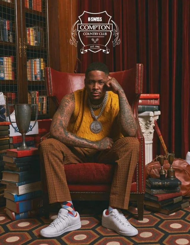 In partnership with Foot Locker, we merged the K-Swiss tennis DNA with Foot Locker’s LA target audience, creating the Compton Country Club with YG and artists on his 4Hunnid label.